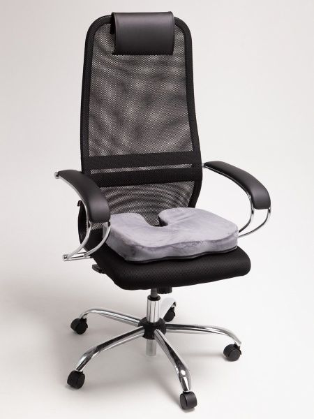Био-подушка на стул с лузгой гречихи светло-серая 50*45