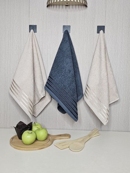 Набор махровых полотенец 3 шт (40*70) т.сер, беж, т.сер, полоса