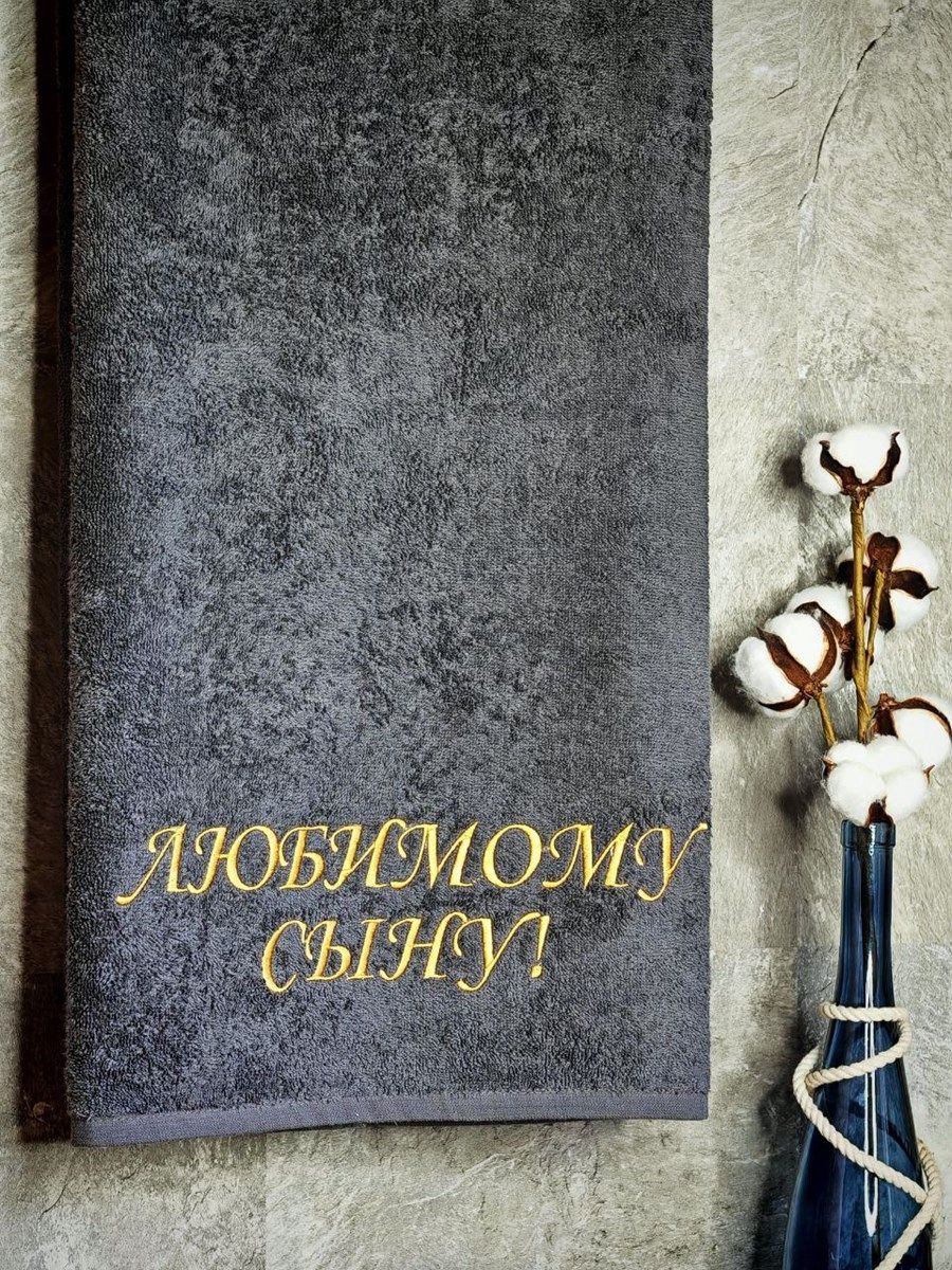 Полотенце с вышивкой 70*140 "Любимый сын" темно-серый POL/любим_сын_серый