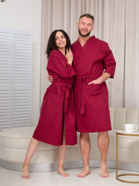 Халат вафельный бордовый