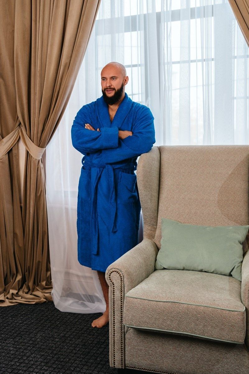 Стильный и удобный махровый халат для мужчин обеспечит комфорт и практичность. Качественная махровая ткань выполнена из натурального хлопка в Узбекистане. Благодаря крою халата, он очень удобен, свободно «сидит».