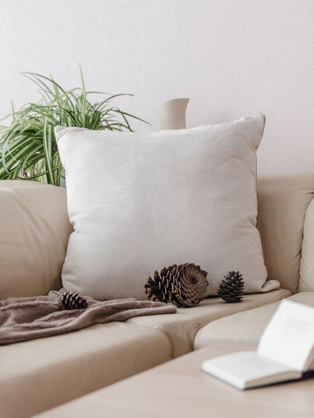 Подушка выполнена в уникальном чехле, который представляет собой натуральный лен, простеганный верблюжьей шерстью. Благодаря такой стёжке жёсткая гречишная подушка стала теплее и мягче на поверхности.