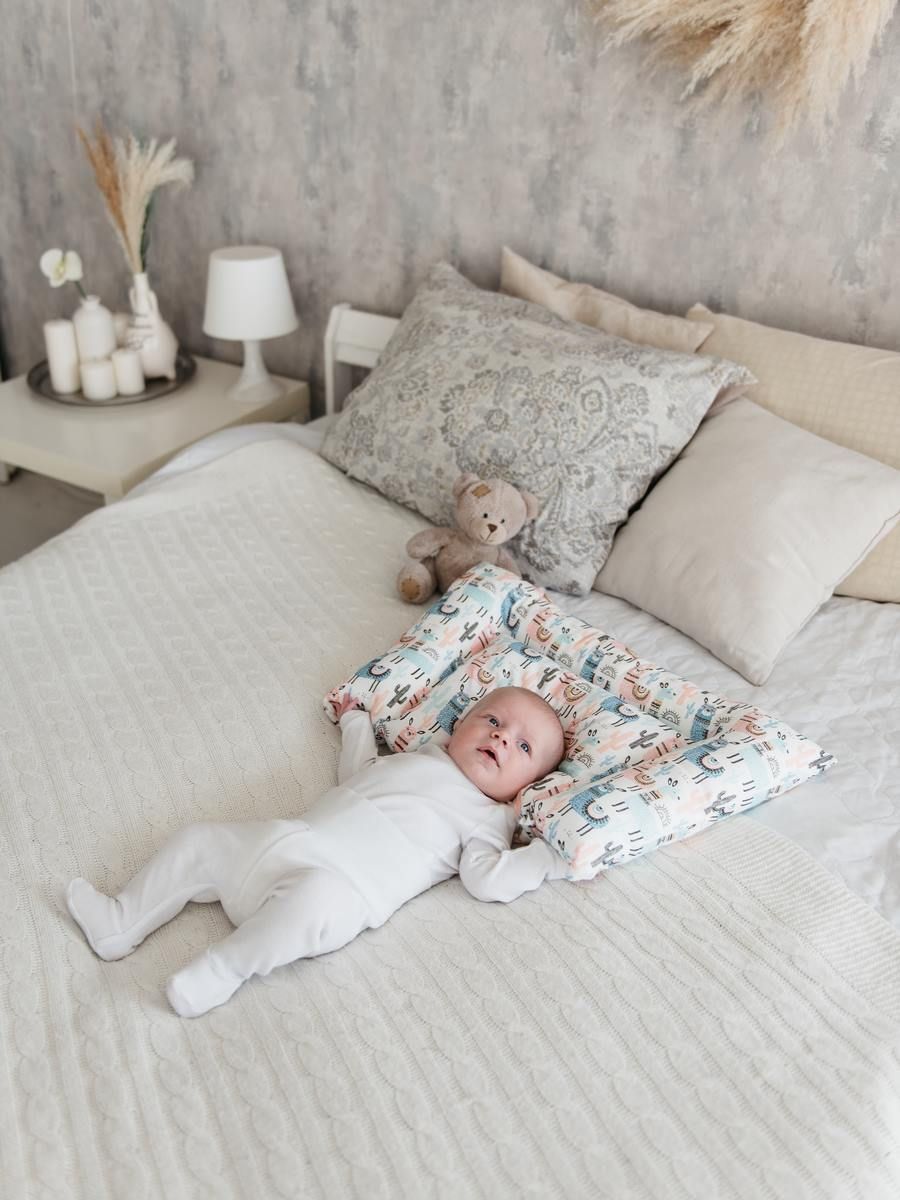 Удобная подушечка создана специально для маленьких детишек. Она легкая и приятная. Валики с трех сторон выполнены для дополнительной поддержки. Боковые «валики» позволяют фиксировать головку на подушечке во время сна или бодрствования, третий валик бережно поддержит шею для правильного развития.