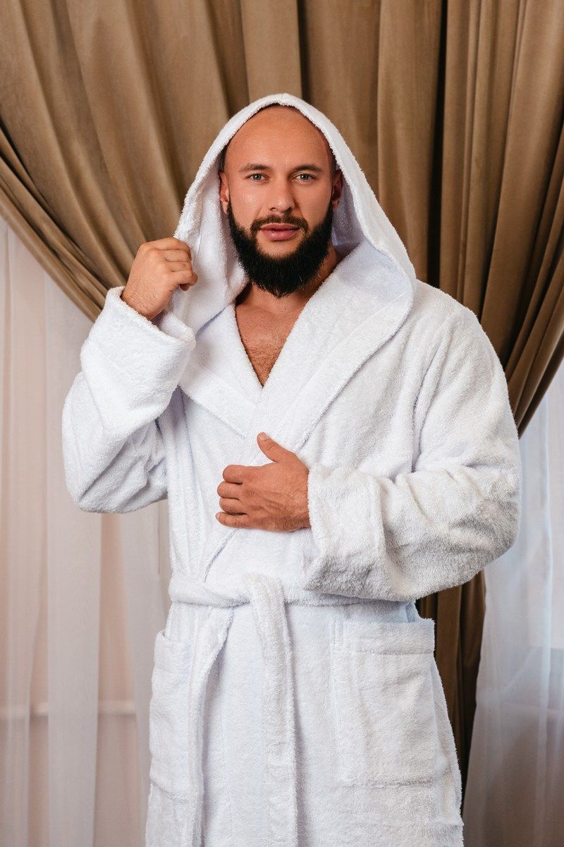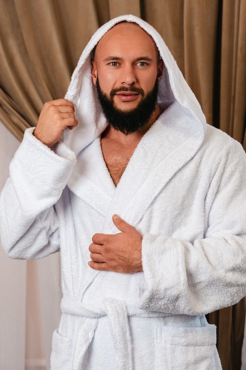 Халат махровый с капюшоном, белый