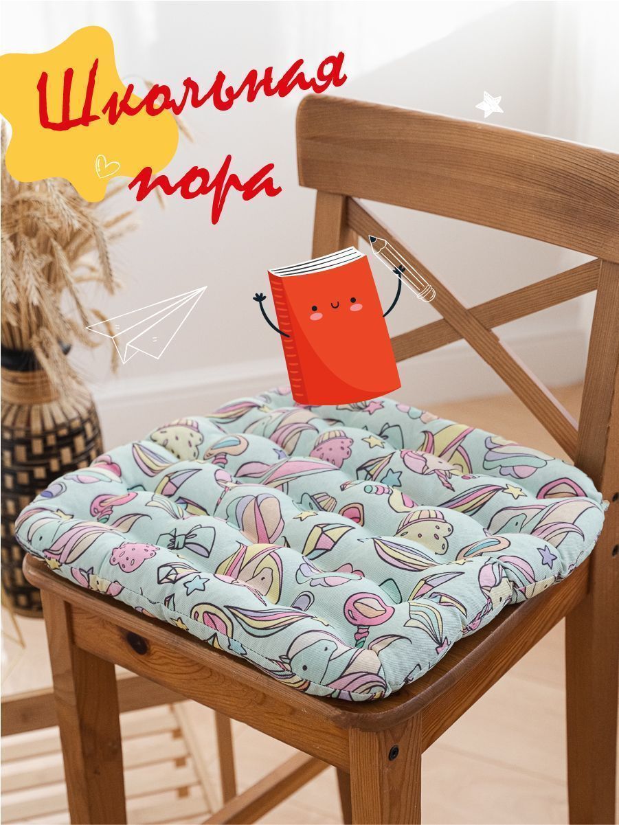 Подушка на стул в красочном дизайне создана специально для детей, преимущественно школьного возраста, так как при выполнении домашних заданий им сложно сохранять правильную осанку. Наполнитель из лузги гречихи обладает ортопедическими свойствами и придает подушке необходимую жесткость. Такая подушка за счет своей формы и особенностей наполнителя очень полезна для правильного развития опорно-двигательного аппарата, хорошего кровообращения при долгом сидении.