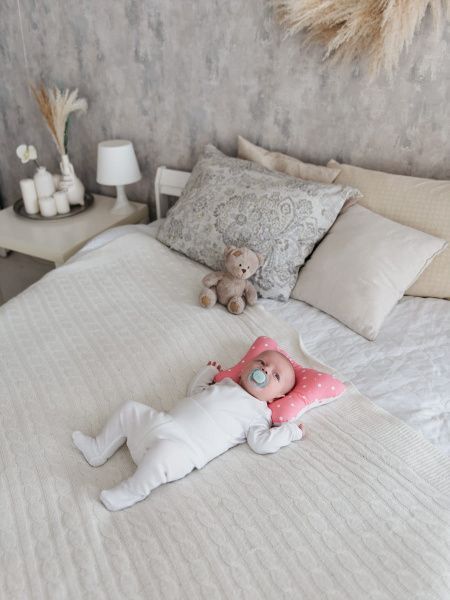 МАЛЮТКА – это удобная и полезная подушечка для самых маленьких детишек. Необычная форма в виде бабочки помогает держать головку на подушечке во время сна или бодрствования и поддерживает шею, обеспечивая правильное развитие.