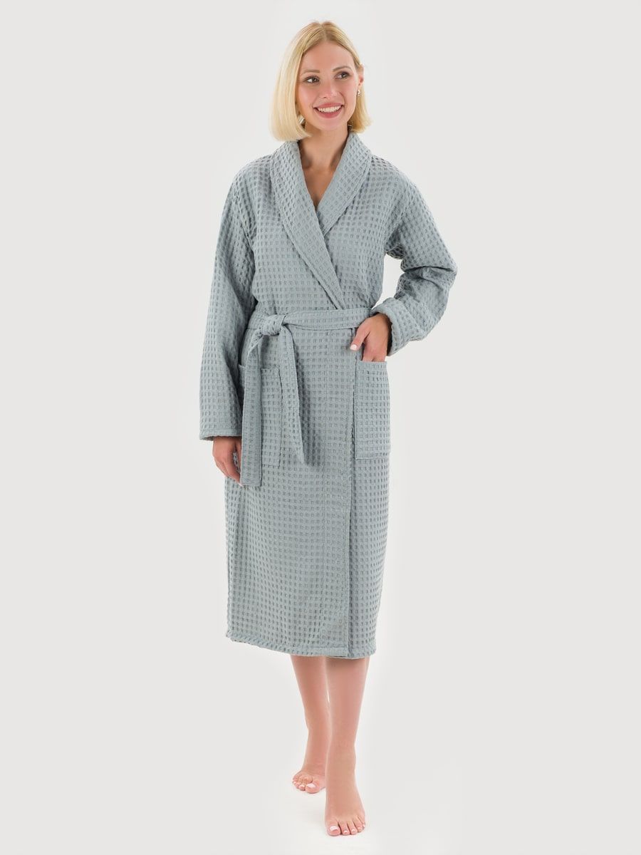 Халат женский вафельный PandaHug Оrnella серый шаль