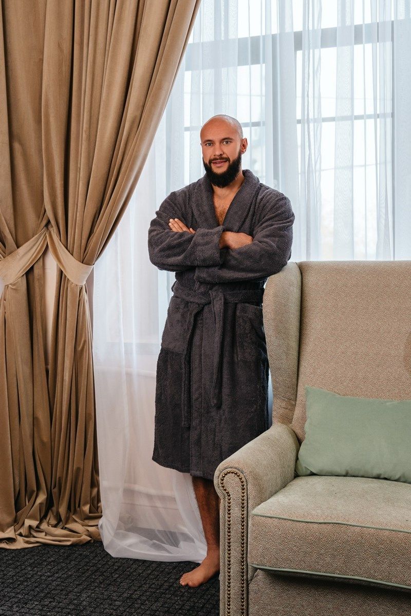 Стильный и удобный махровый халат для мужчин обеспечит комфорт и практичность. Качественная махровая ткань выполнена из натурального хлопка в Узбекистане. Благодаря крою халата, он очень удобен, свободно «сидит».