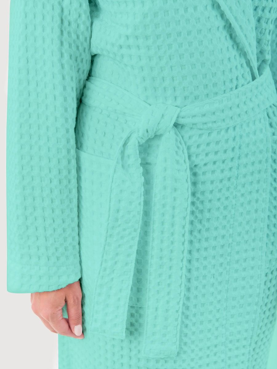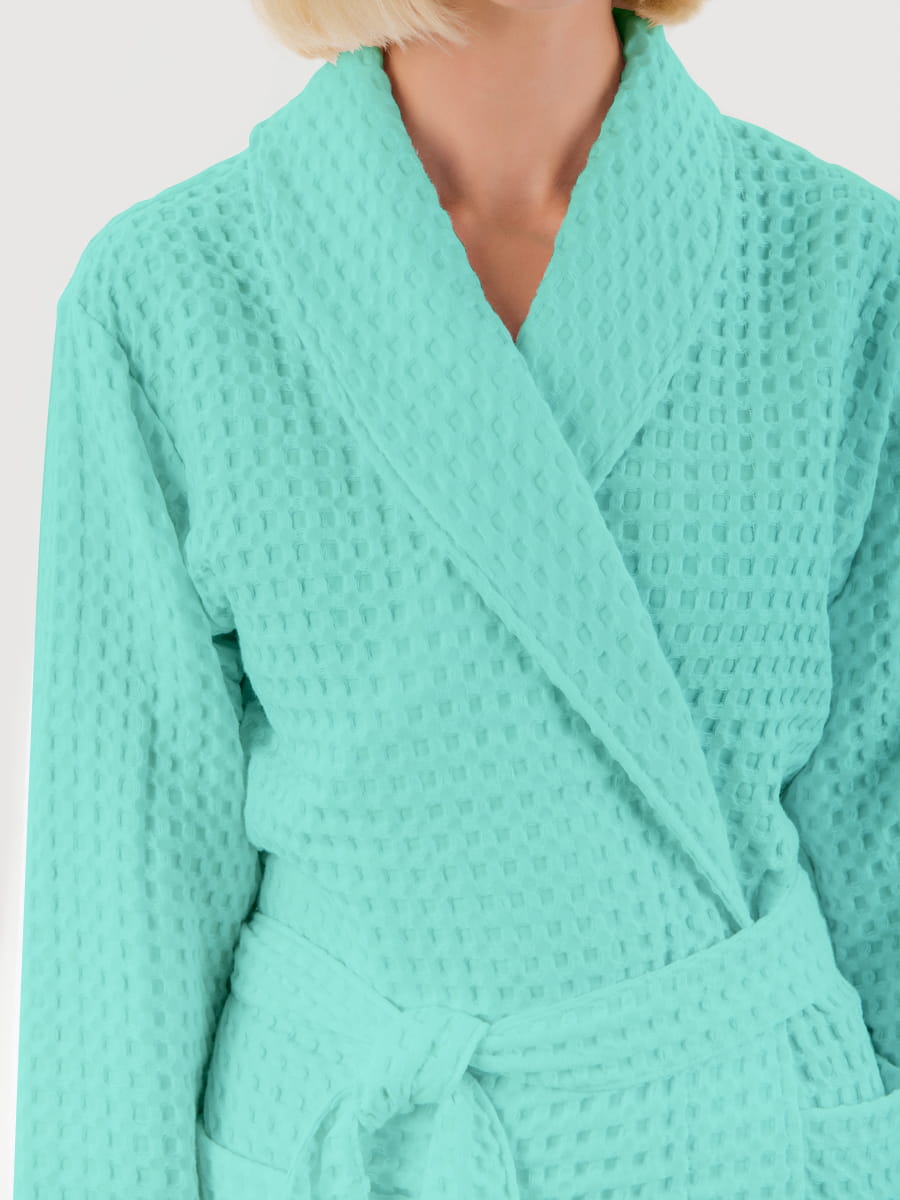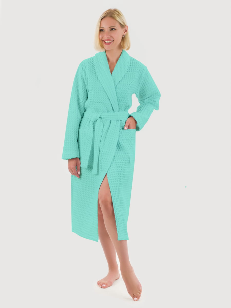 Вафельный халат «Комфорт» в крупную клетку с карманами и пояском. Благодаря высочайшему качеству ткани, халат не растягивается, очень прочен и обеспечивает максимум комфорта.