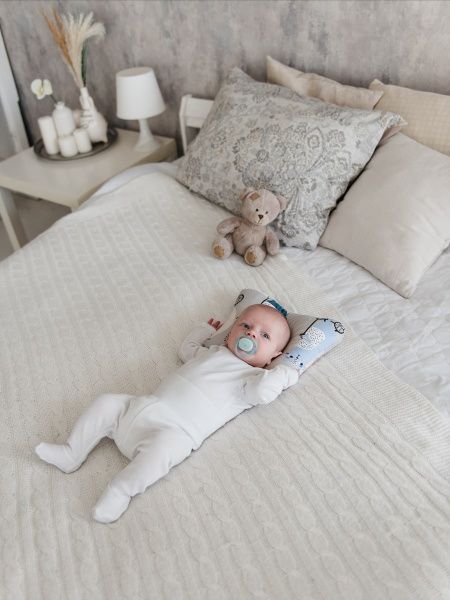 МАЛЮТКА – это удобная и полезная подушечка для самых маленьких детишек. Необычная форма в виде бабочки помогает держать головку на подушечке во время сна или бодрствования и поддерживает шею, обеспечивая правильное развитие.