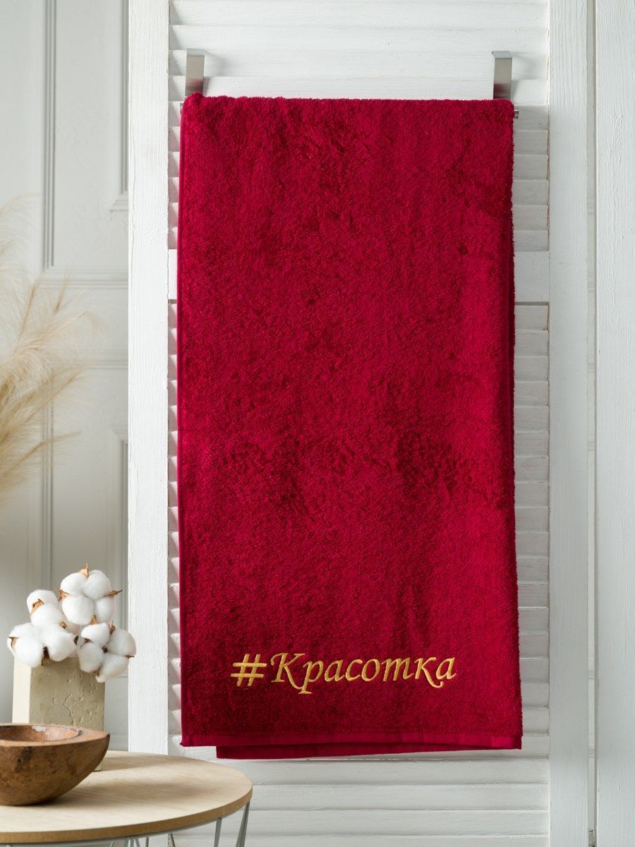 Полотенце с вышивкой 70*140 "красотка" бордовое POL/красотка