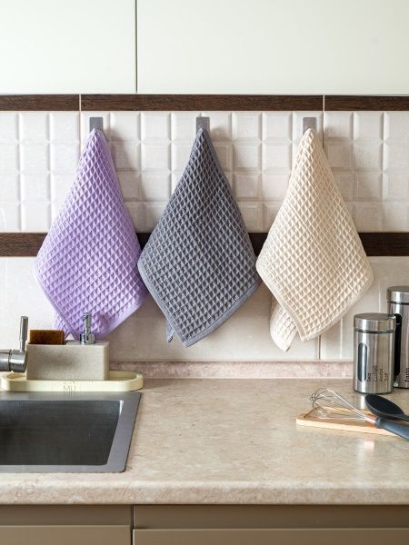 Набор вафельных полотенец 3 шт (30*60) сиреневый, серый, бежевый Npol/8788