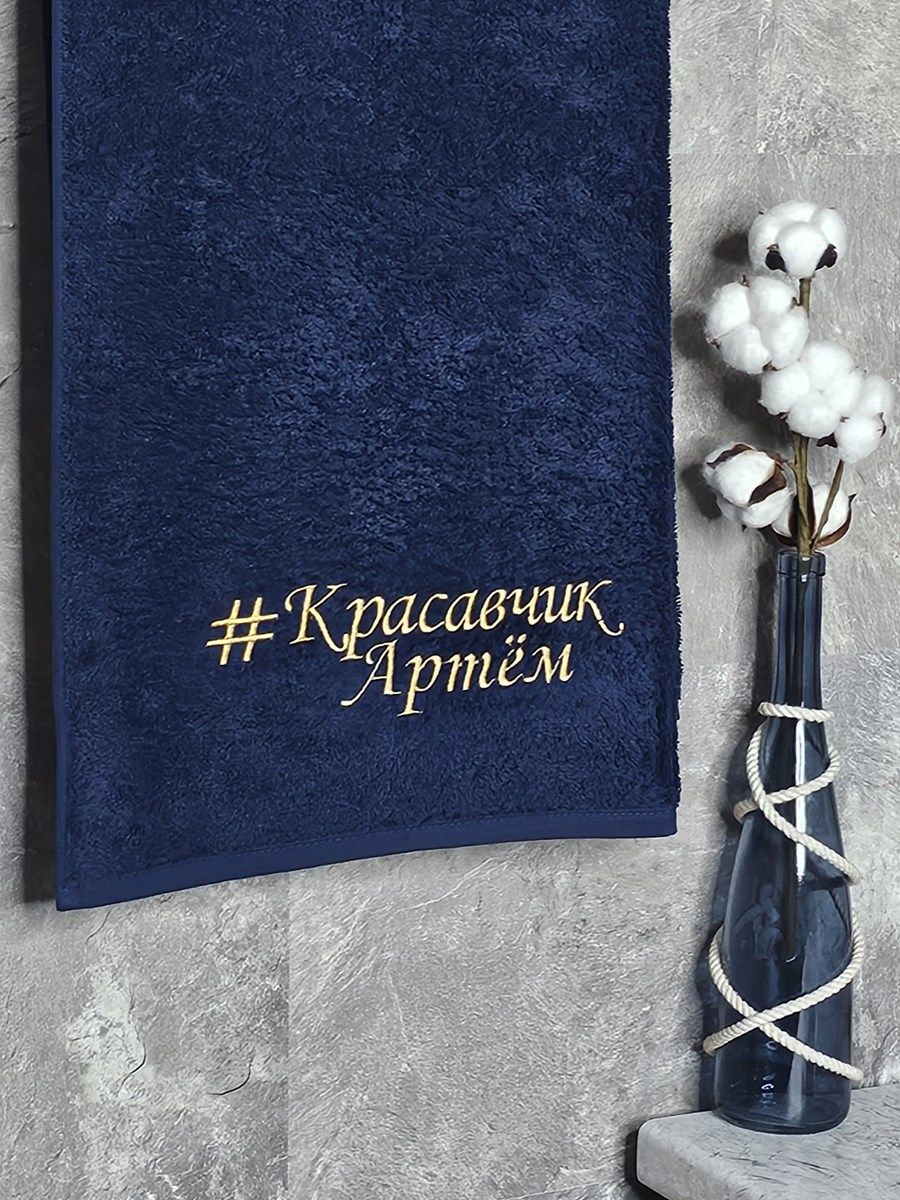 Полотенце с вышивкой 70*140 "красавчик" Артем темно-синее