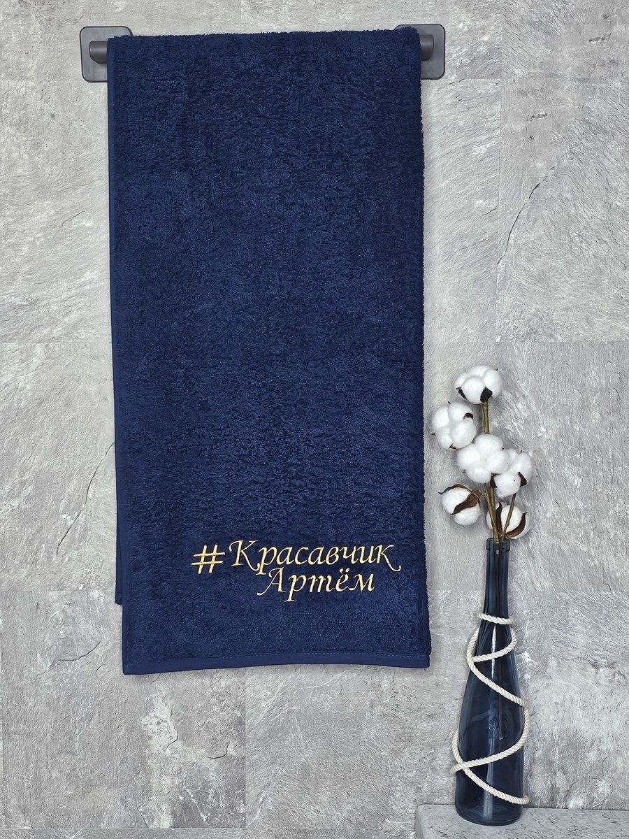Полотенце с вышивкой 70*140 "красавчик" Артем темно-синее POL/красавчикАртем/2122