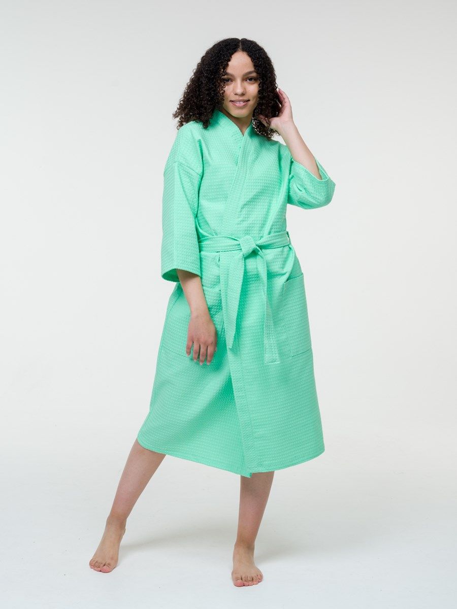 Вафельный банный халат — отличный выбор для любителей комфорта и уюта. Вафельная хлопковая ткань абсорбирует влагу быстрее, чем любой другой материал, поэтому, если вы ищете практичный вариант халата после душа или сауны, то на изделия из вафли точно стоит обратить внимание.